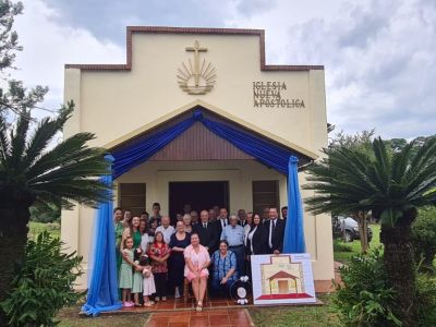 El domingo 3 de marzo se celebró en la INA Sud América el primer Servicio Divino en ayuda para los difuntos de este año. En este festivo marco, el Apóstol de Distrito Enrique Minio, acompañado por el Apóstol Néstor Manzelli y el Obispo Javier Ávalos, ofició el último fin de semana en iglesias del sur de Paraguay.