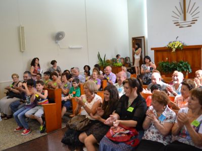 Unos 100 participantes (contando a niños y adultos) se congregaron en la iglesia San Andrés (en la zona norte de la provincia de Buenos Aires) para compartir un encuentro informal denominado “Té con abuelos”. Fue el sábado 25 de octubre de 2014.